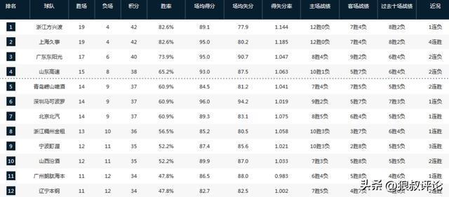开云体育下载-CBA第一阶段完整排名:广厦上海争第1 中游竞争惨烈 四川0胜23负