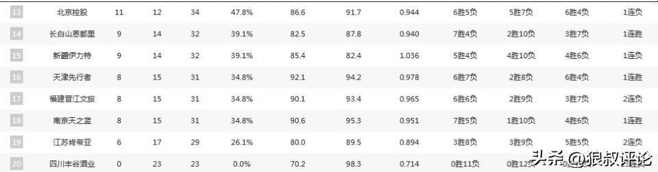 四川男篮则是成为最“特殊”的球队,以0胜23负,牢牢占据第二十名。